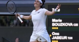 لندن في 06 يوليو/ بنا / تأهلت اللاعبة التونسية أنس جابر للمرة الأولى بالبطولات الكبرى للتنس اليوم إلى الدور نصف النهائي ببطولة ويمبلدون، ثالث البطولات الكبرى بموسم التنس، لتحقق إنجازا تاريخيا . وجاء التأهل بعد فوز، المصنفة الثانية عالميا ، على اللاعبة التشيكية ماري بوزكوفا، المصنفة رقم 66 عالميا، بمجموعتين …