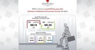 المنامة في 16 أغسطس/ بنا / أظهرت نتائج مسح قياس ثقة المستثمرين بمناخ الأعمال الذي أجرته إدارة الإحصاء والسجل السكاني بهيئة المعلومات والحكومة الإلكترونية في الربع الثالث من عام 2022 أن 91.1% من المؤسسات التجارية بمملكة البحرين تتوقع أداءً مستقراً لأداء الأعمال خلال للربع الثالث من العام الجاري. وحقق مؤشر …